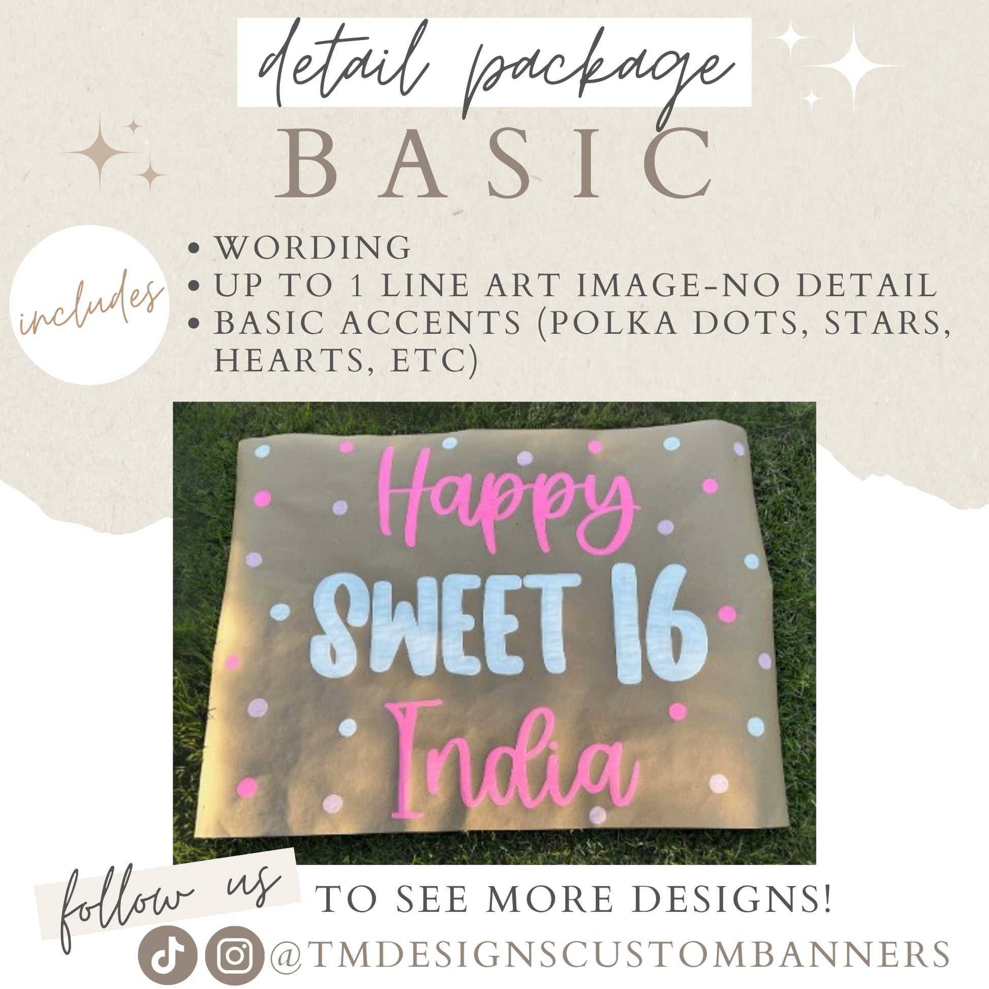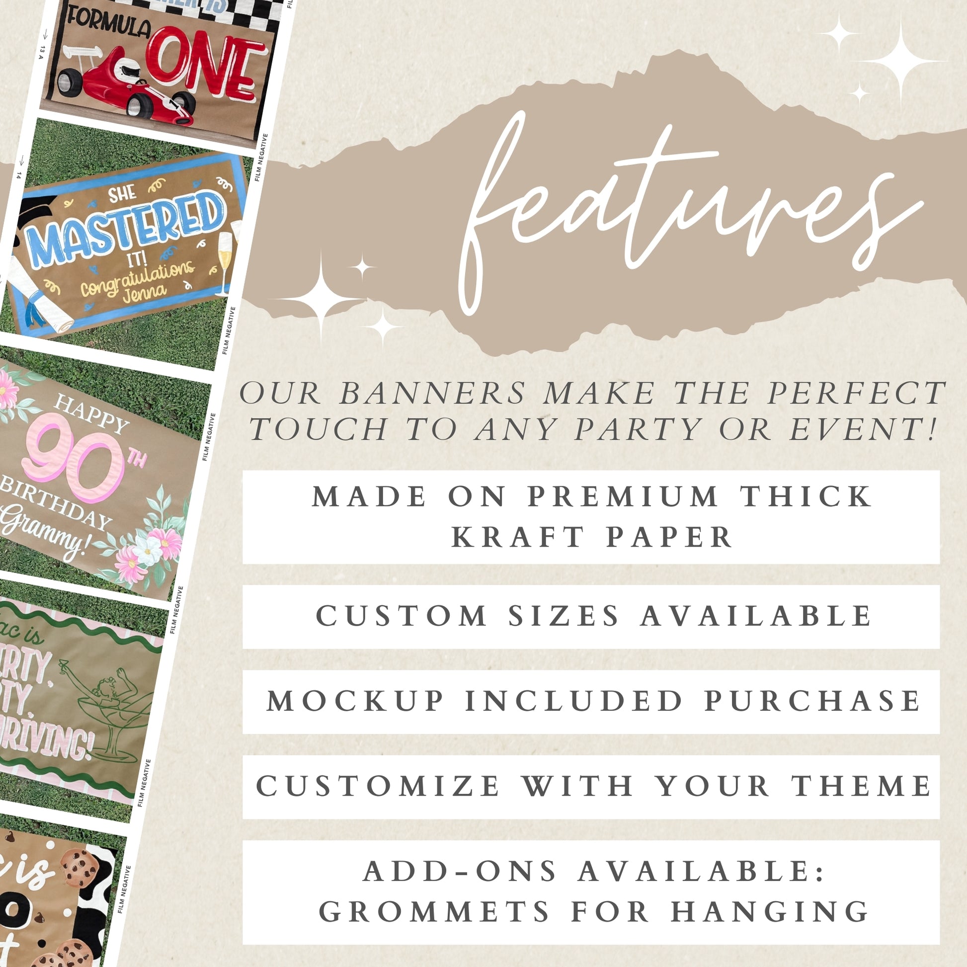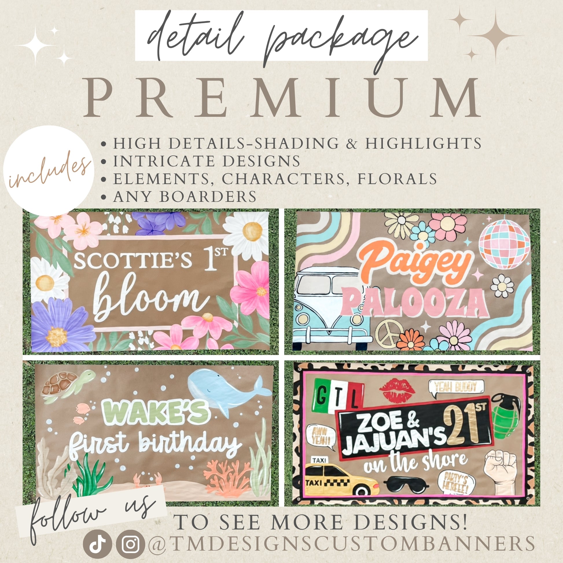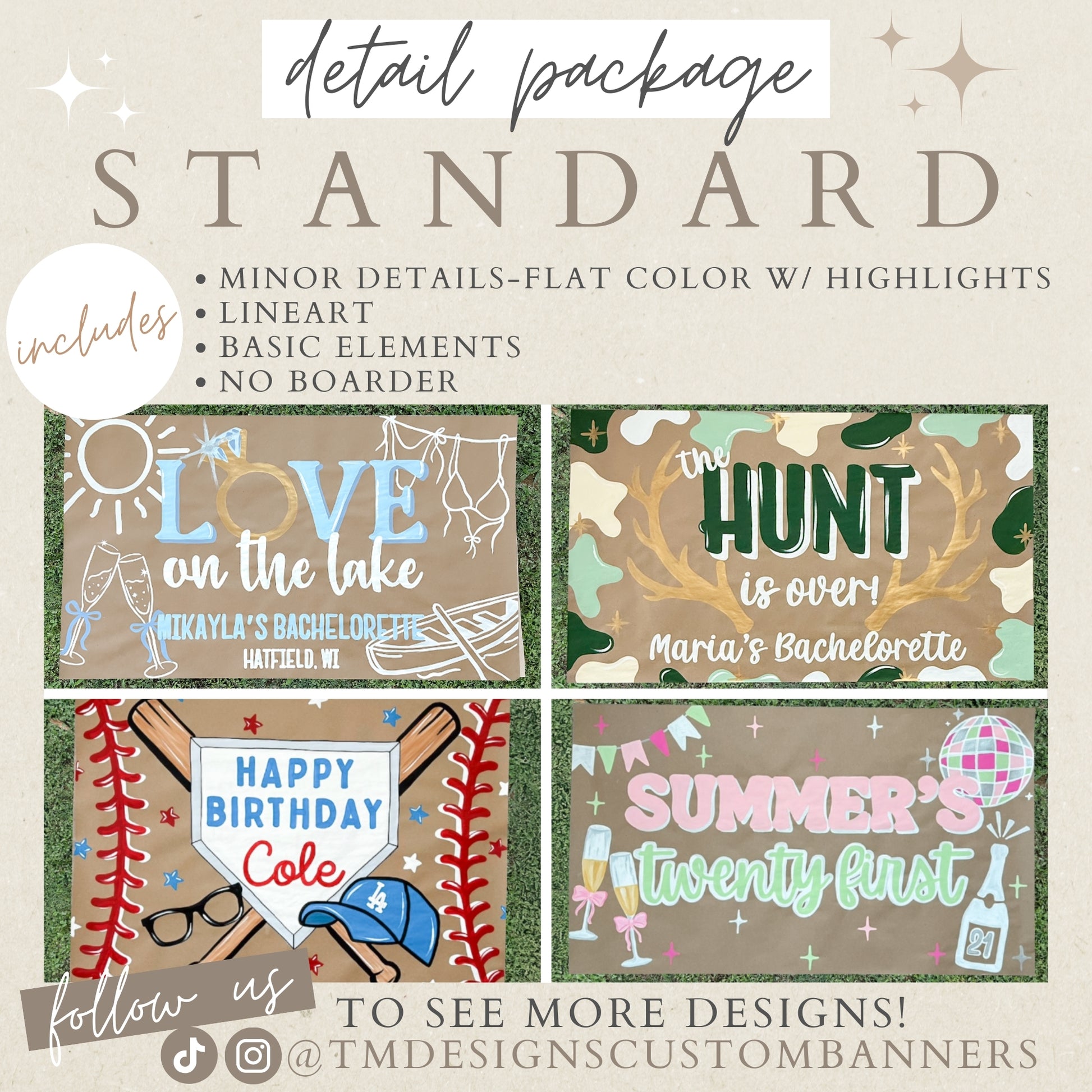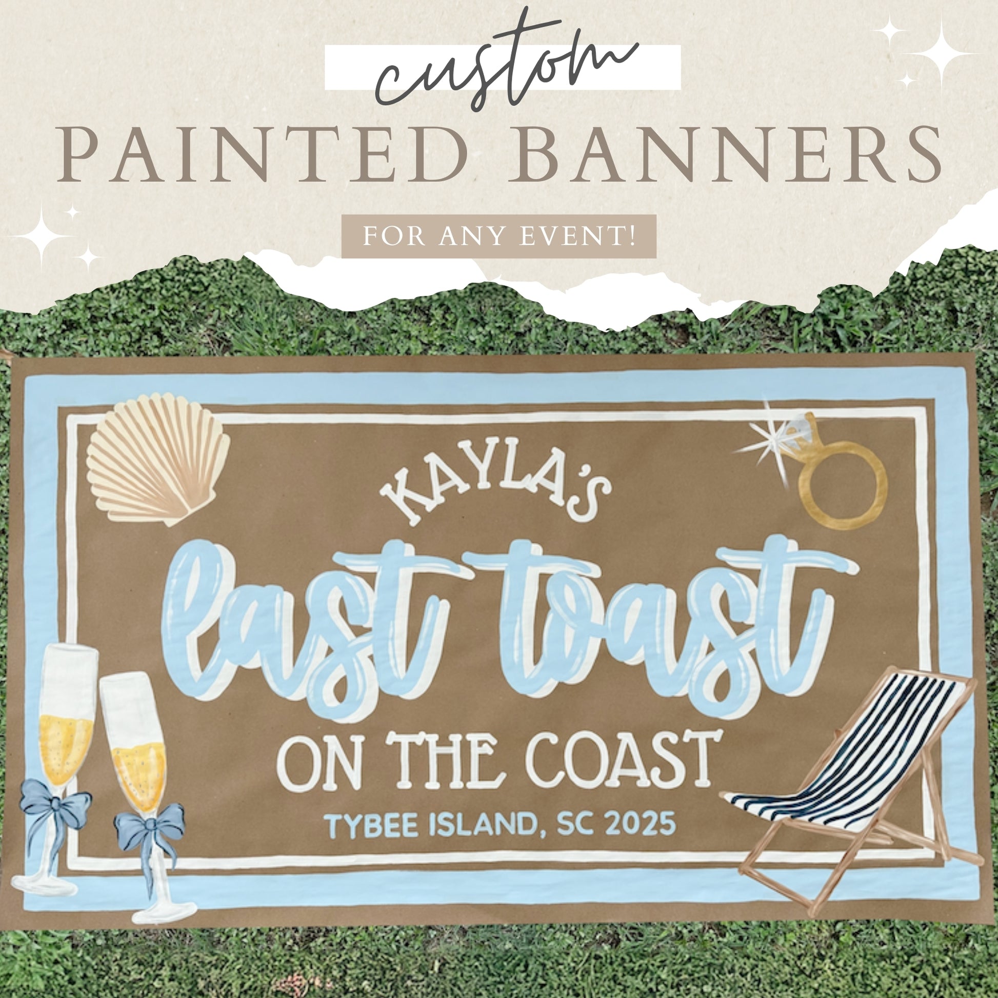 Custom hand painted banners for ANY occasion! Once purchased, I will work with you to customize your banner with a theme/colors/characters/etc or you can pick a design that I already have! Great for bachelorette parties, birthday parties, weddings, engagement parties, retirement parties, concerts, the list goes on! These banners also make a great photo backdrop ◡̈