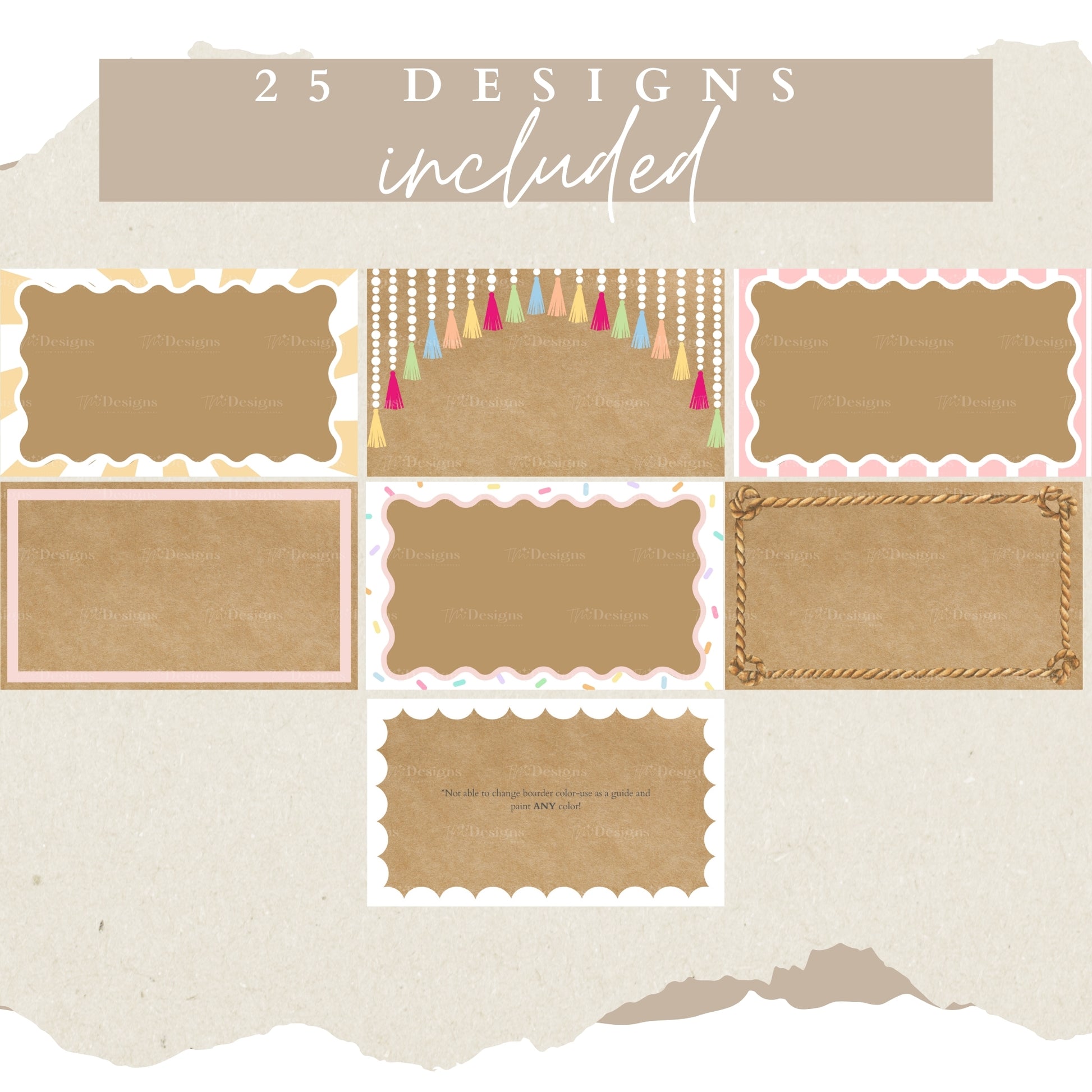 - 25Β templates (60x35")-Simple and detailed boarders included